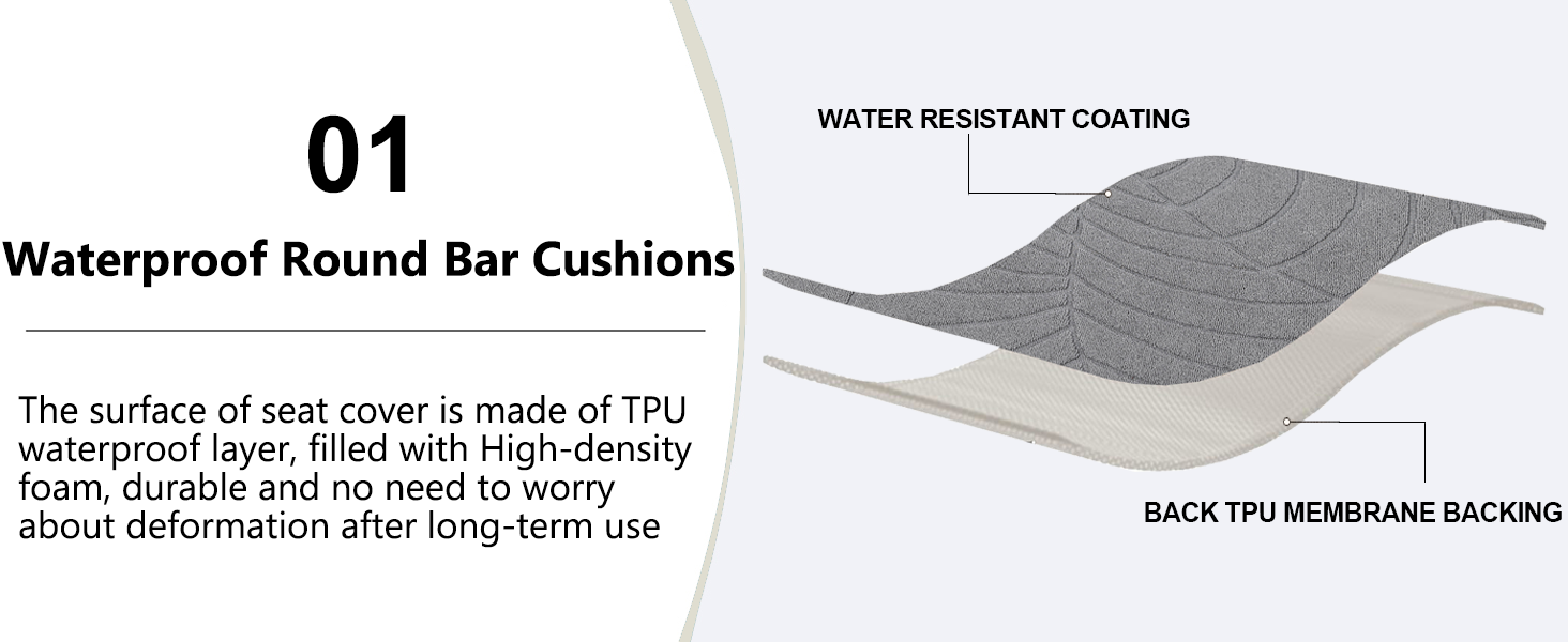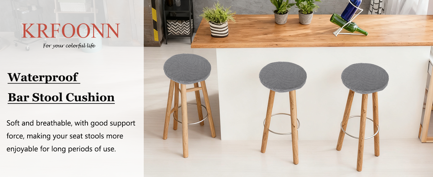 Waterproof Round Bar Cushions: KRFOONN round bar stool cover are crafted from polyester and spandex, the surface of seat cover is made of waterproof coating layer, filled with high-density foam, durable and no need to worry about deformation after long-term use. There are various colors and combinations to choose from, and you can choose your favorite style to purchase.