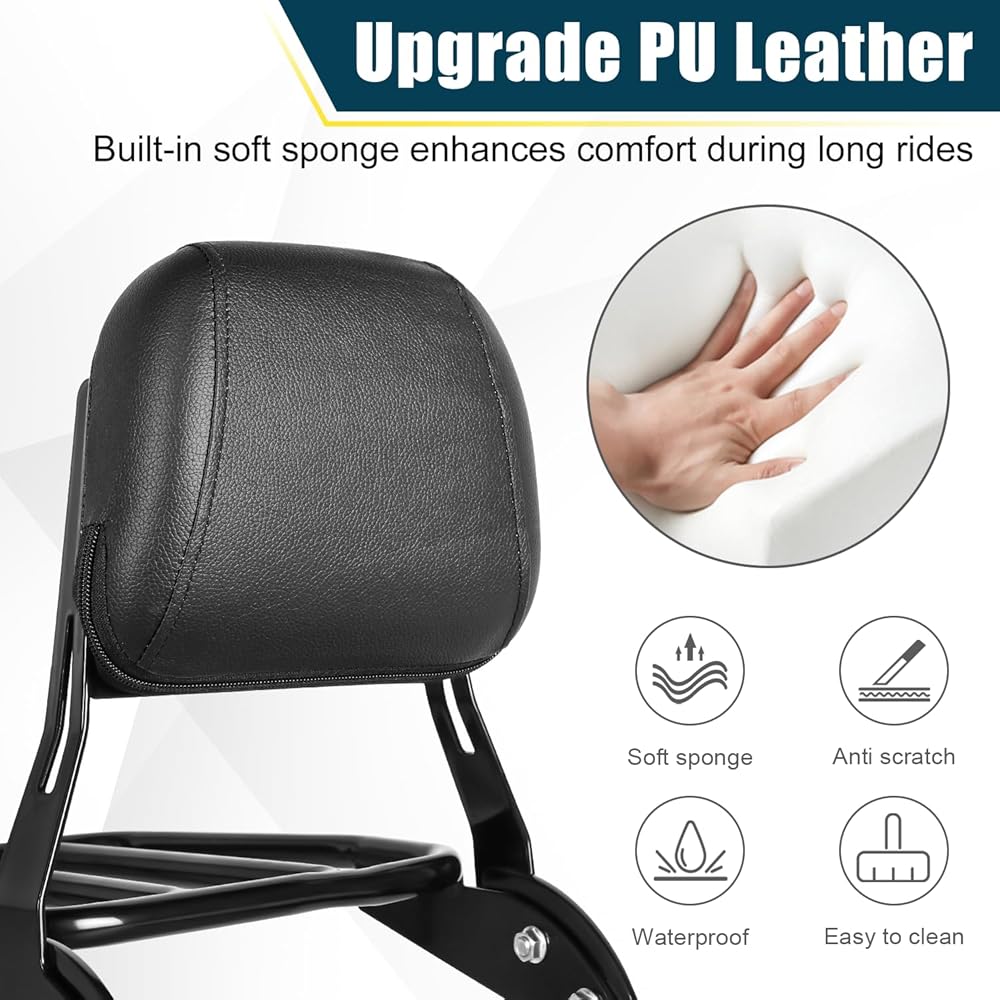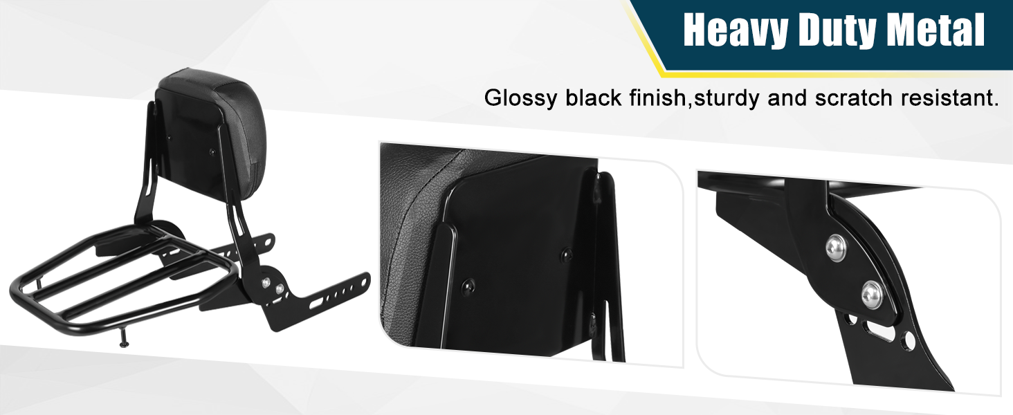 2.The backrest sissy bar is made of high-quality metal material,sturdy,wear-resistant,scratch resistant,and not easy to rust or peel off paint.The back rest cushion pad with zipper is made of high-quality breathable PU leather,easy to disassemble and clean.Built in soft sponge to provide passengers with sufficient comfortable back support and improve the comfort of long-term riding.