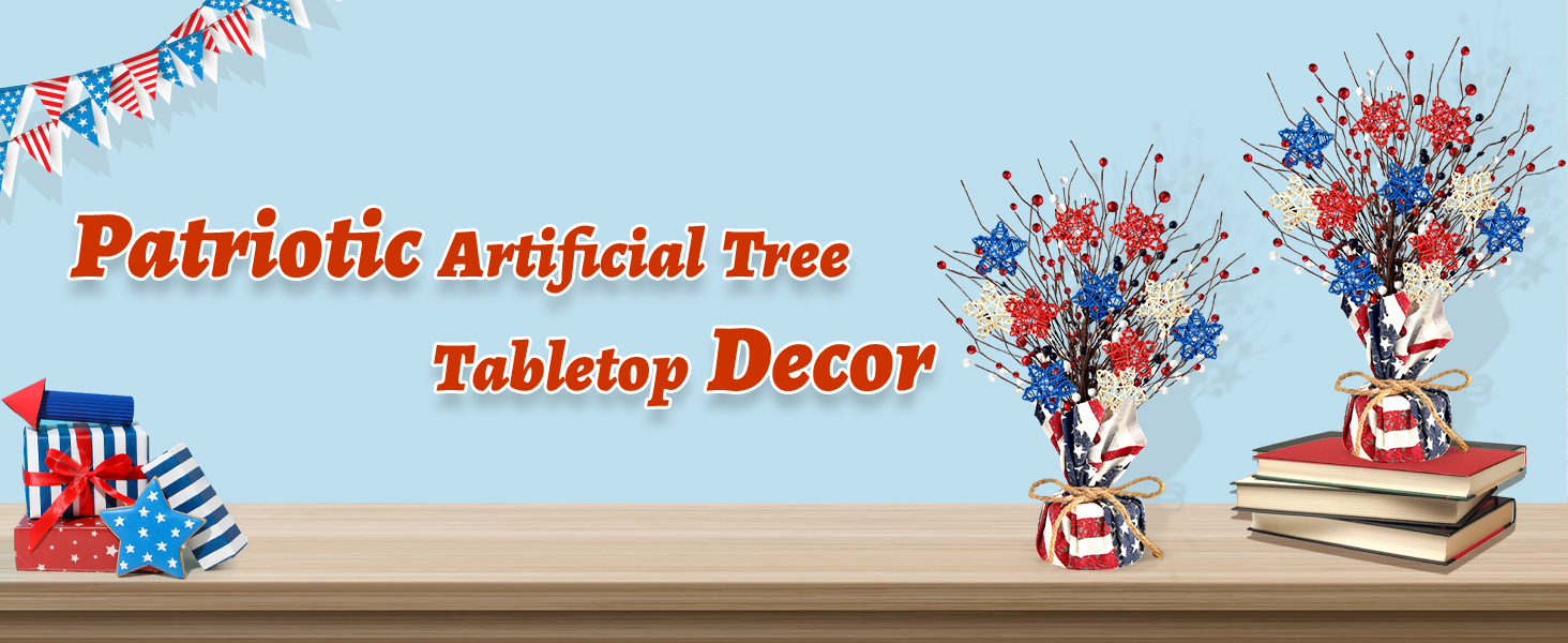 Easy to Use: Independence Day artificial trees are easy to use, the trunk of the table tree is integrated with the base, only need to expand the trunk (bendable) part of the Artificial tree from bottom to top until it forms a tree shape to complete the operation steps, sure to add some rustic look and cheer accent to a room, welcome Independence Day with bright and cheery decoration
