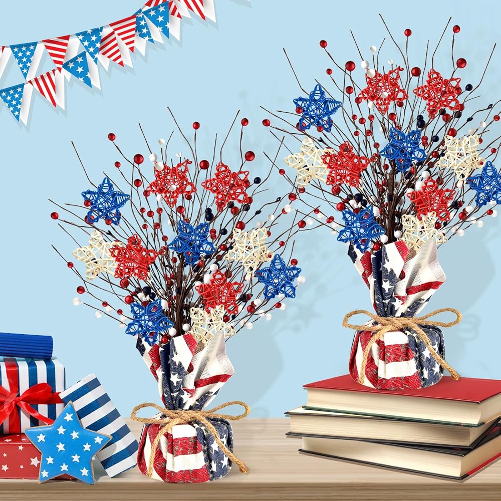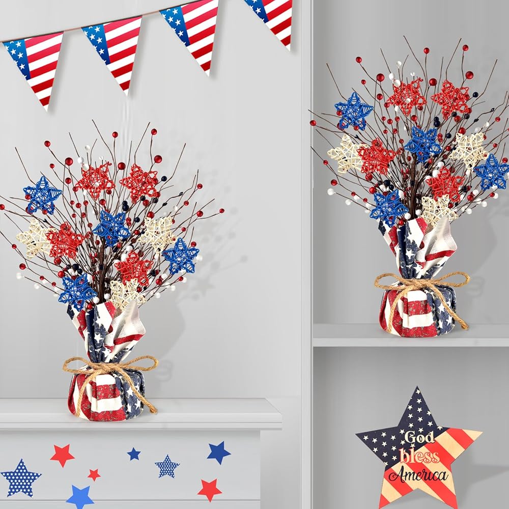 High-Quality Material: the artificial tree is made of high quality cotton and linen fabric and sturdy rattan to ensure does not break, our patriotic table tree are made of artificial thicker and stronger more durable, will not fade, can be reused for a long time, perfect for anywhere in your living room or house