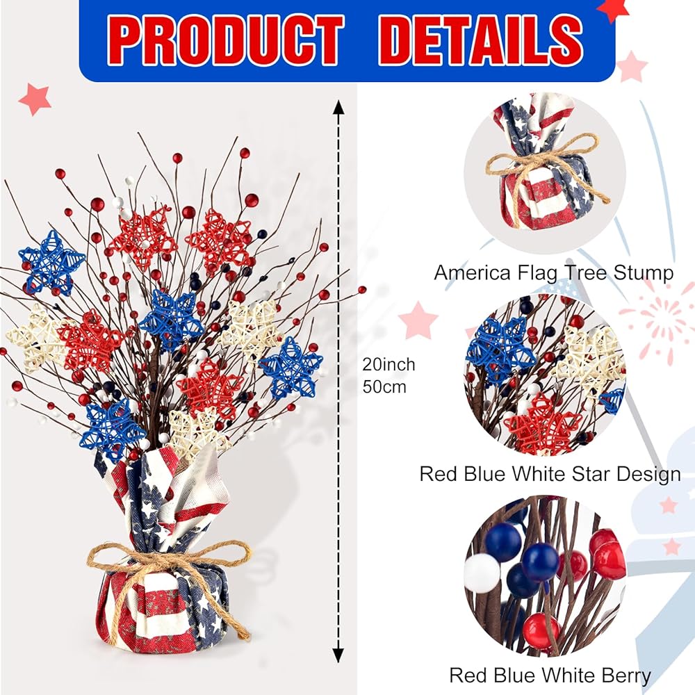 Wide Applications: our patriotic table tree is perfect for celebrating Independence Day, Patriotic Memorial Day, Veterans Day, and 4th of July theme celebration, you can decorate the desktop, living room, bedroom, dining room, mantel, porch, window, desk, office etc, it can also be used for parties or blessings as gifts to friends or relatives or child