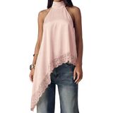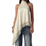 Women y2k halter mock neck lace trim tank top aesthetic retro casual floral lace sleeveless off the shoulder loose fitted satin cami shirt girls fairy coquette cute stand collar open back baggy lace asymmetric hem cami top solid color cutout back contrast lace camisole going out flowy halter tops for women 2026 Summer chic outfits