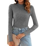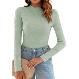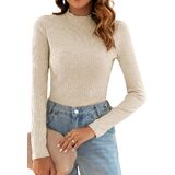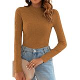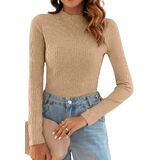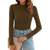 Poetsky Women's Fall Long Sleeve Tops Lightweight Turtleneck Sweater Ribbed Fitted Basic Shirts
