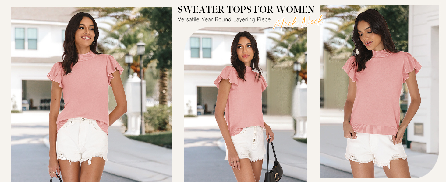 Ruffle Sleeve & Crewneck Design: Sweaters for Women features trendy ruffle sleeves and a chic mock neck collar, creating a stylish silhouette that's perfect for 2026 spring and summer fashion. This elegant design offers a modern twist on the classic sweater, ideal for both casual outings and office wear