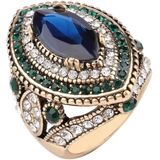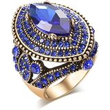 Vintage Gorgeous Big Size Gold Plated Crystal Inlaid Statement Ring Punk Turkish Colorful Gemstone Dinner Party Jewelry for Women in Kuwait