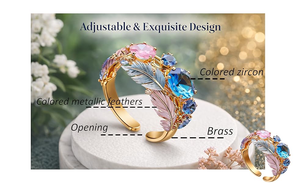 [Lightweight & Comfortable] - Crafted from quality alloy with a polished gold finish, this cubic zirconia feather ring is lightweight and smooth, making it ideal for all-day wear at weddings, vacations, parties, or daily outfits