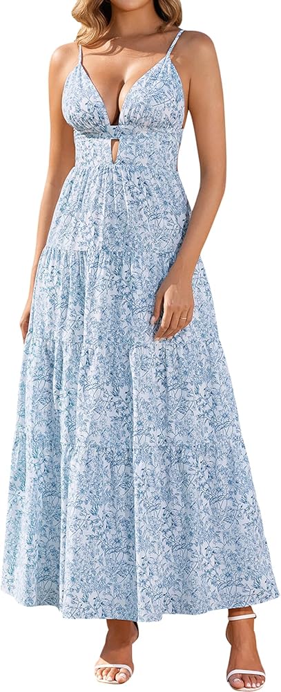 Features: Flowy dresses for women, floral maxi dress, spaghetti strap dresses for women, long sundress, v neck, a line dresses for women, adjustable strap, cut out, stretchy waist, backless, high waist