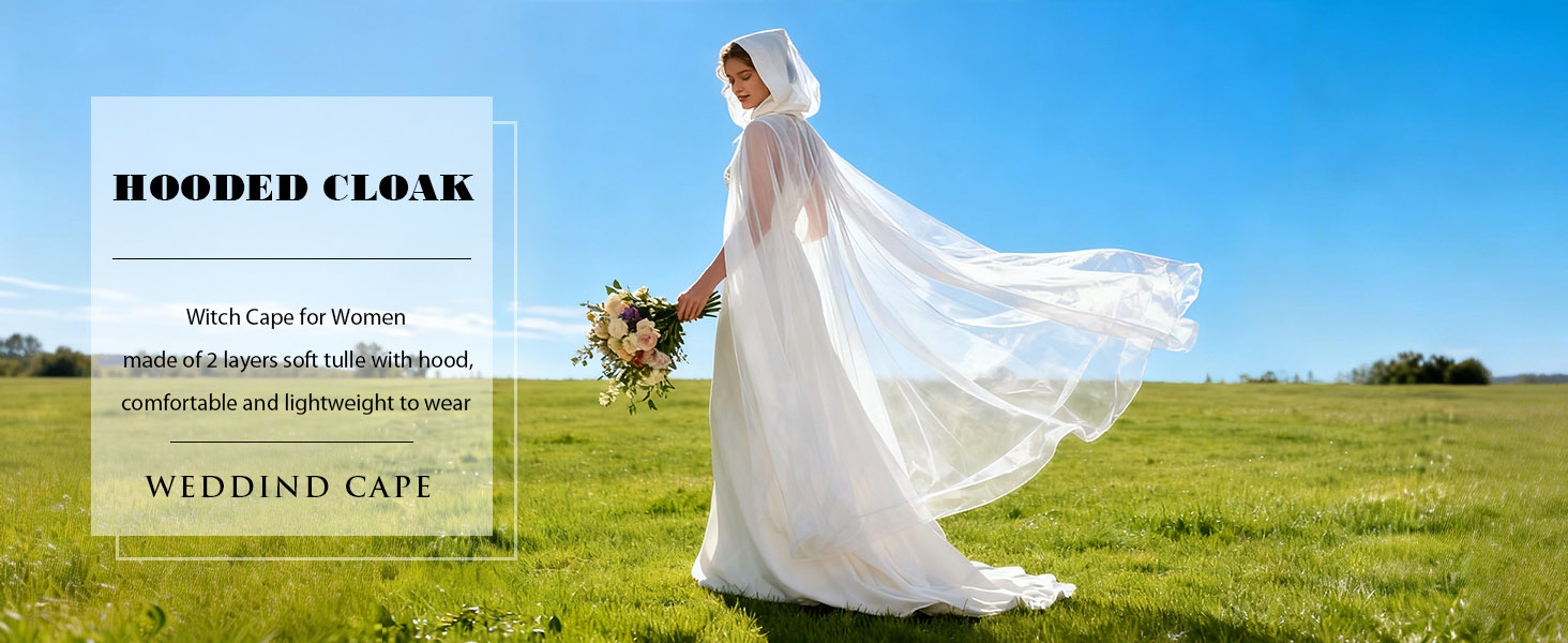 Tulle hooded cloak for women is made of 2 layers soft tulle with hood , no fade, no break, you can wear it comfortably for a long time