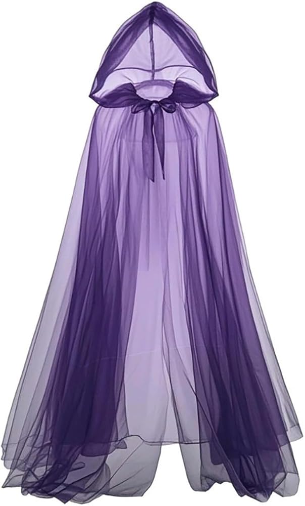 Purple tulle cape size approx: Cloak Length 59.1in/ 150cm; Hood Hat Height 13.8in/35cm, can trim it to the appropriate length according to your own needs