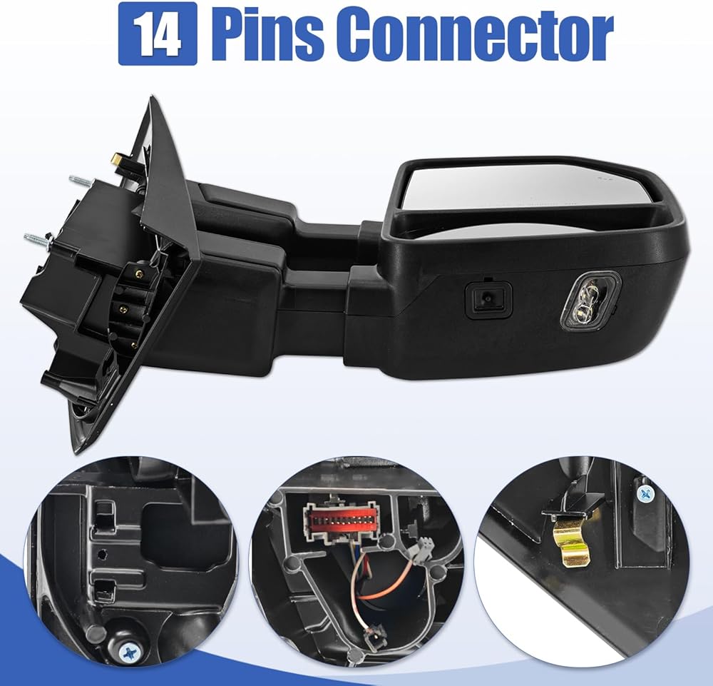【High Quality and Easy to Install】Our right passenger side tow mirror are made of high-quality materials, strong and durable, rust-proof and corrosion-resistant, with long service life and no risk of bending or melting. Our side mirror replacement parts are designed for hassle-free installation, requiring no specialized tools.