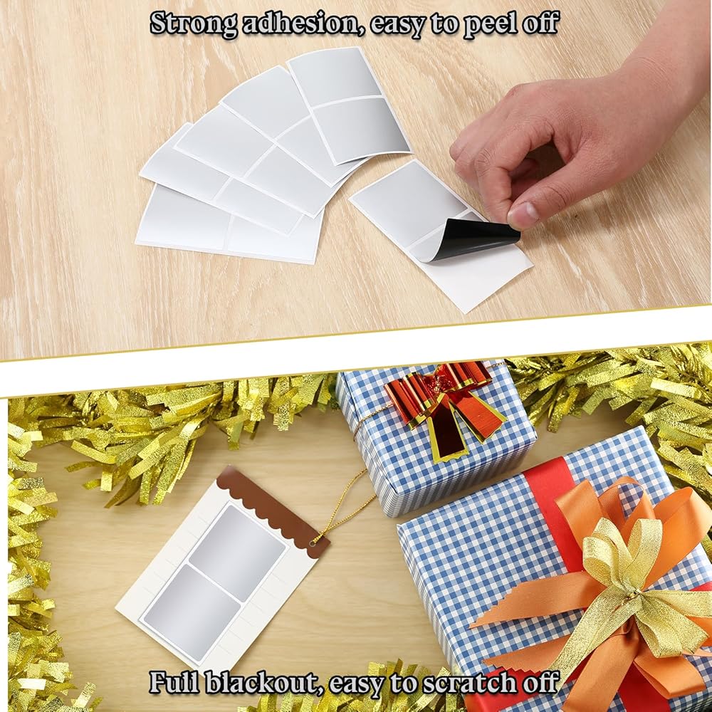 SIZE AND MATERIAL:Contains 50 square silver stickers.There is a thin film between the scratch layer and the paper to protect your content from being scratched off