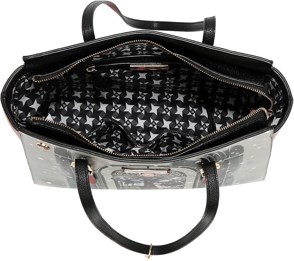 Elevate your accessory collection with the Nicole Lee Moda Snowflake Shopper 3 Piece Set, a stunning trio that combines style and functionality. This sophisticated set includes a spacious shopper handbag, versatile crossbody, and coordinating wallet, all crafted from premium vegan pebbled leather with elegant gold-tone hardware. The shopper features dual top handles, a secure two-way zip closure, and protective metal feet, while the crossbody offers both a top handle and adjustable strap for multiple carrying options. Complete with a well-organized wallet featuring multiple card slots and compartments, this snowflake-themed collection offers everything you need for everyday organization. The exclusive print interior lining adds a touch of luxury to this versatile set that transitions seamlessly from work to weekend outings. Make a statement of confidence and timeless style with this beautifully coordinated ensemble.