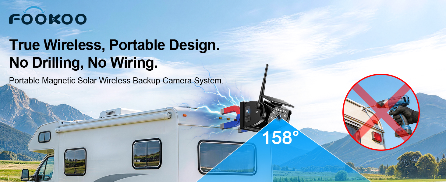Fookoo Magnetic Solar Wireless Backup Camera: Portable 7" DVR Monitor with BSD 1 Min Install HD 1080P Rear View Camera Night Vision Rechargeable Dual Split for Truck Pickup RV Camper Tractor DTC701