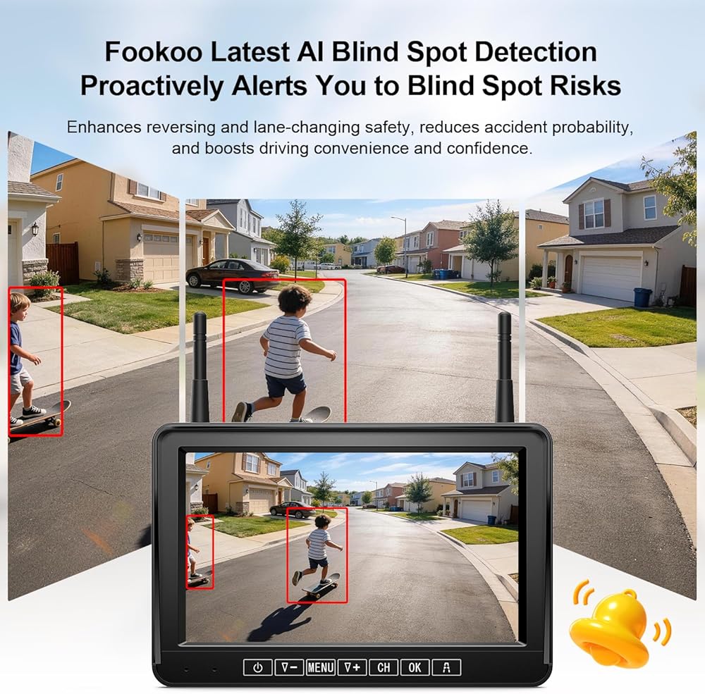Lastest Smart AI BSD Technology: Our system features intelligent AI Blind Spot Detection (BSD) that actively monitors your vehicle's surroundings. When someone enters your preset detection zone, the monitor emits a clear audible and visual alert, providing crucial awareness during lane changes, reversing, and while on long journeys or in low-light conditions for safer, more confident driving.