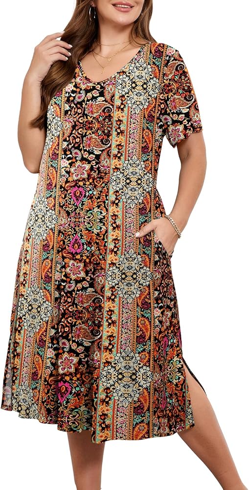 Fabric: Plus size dresses is well made of ultra-soft comfy fabric, plus size but lightweight. Loose T-shirt dress with stretchy fabric provides more comfort in summer hot days. This plus size midi dresses is light and ideal for spring, summer and fall wear