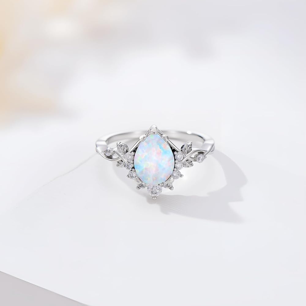 【IDEAL GIFT】This pear opal engagement ring is more than just jewelry; it's a cherished keepsake that symbolizes a promise of love. It's the perfect choice for engagements, anniversaries, or any special occasion that celebrates your unique bond.