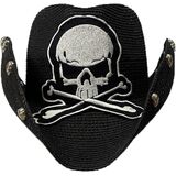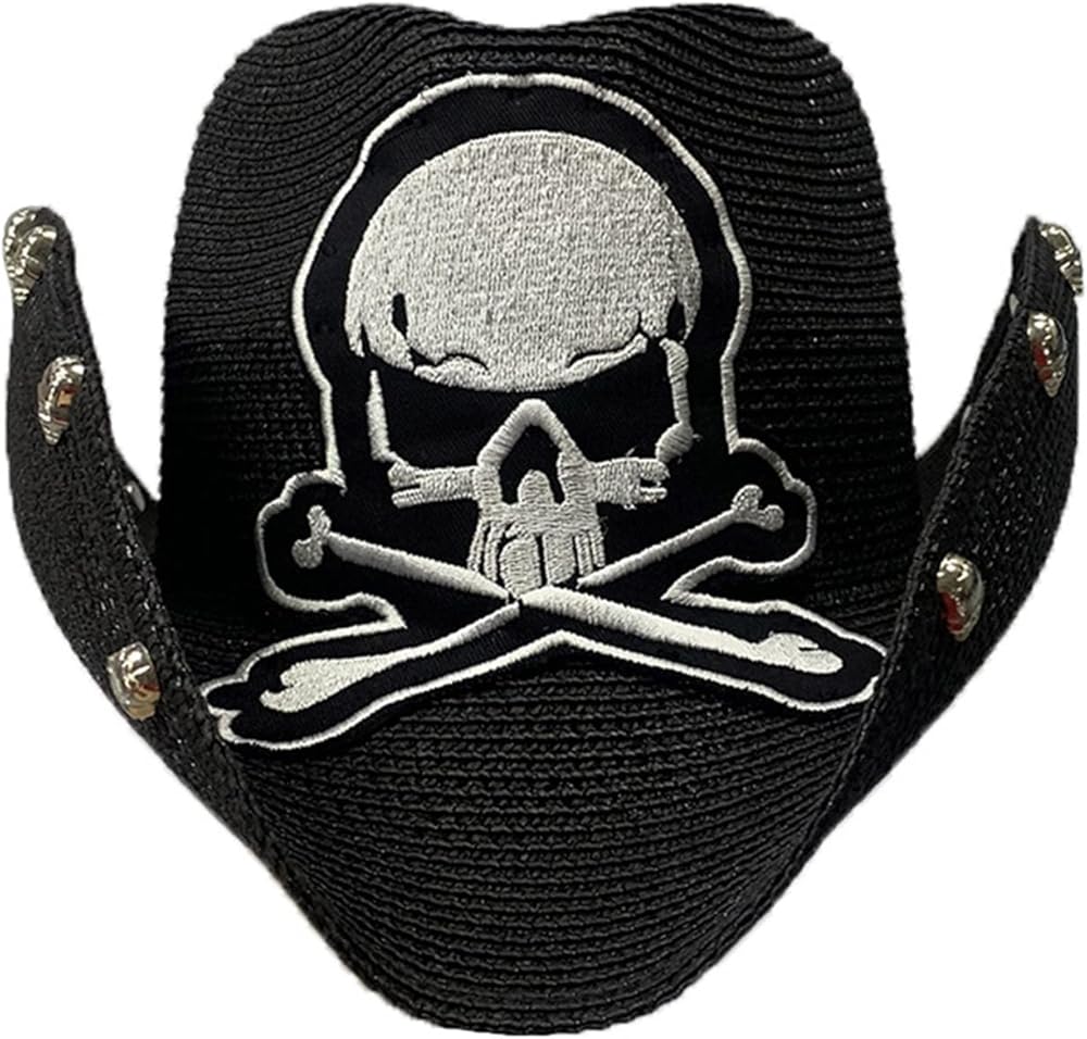 Lightweight Punk Straw Weaving Hat for Women Men Breathable Cowboy Cap with Embroidery Skull Cap