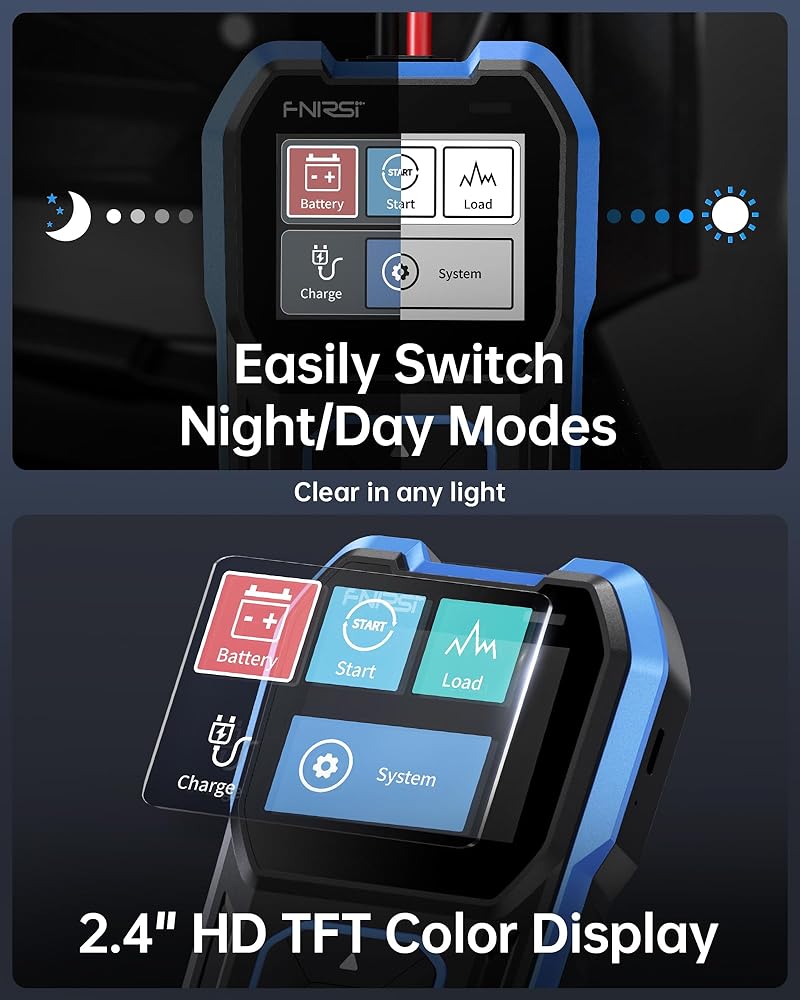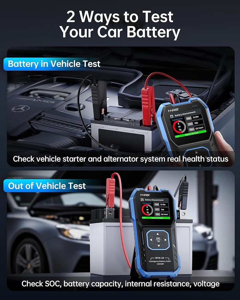 FNIRSI BTM-24 Car Battery Tester 12V 24V, 0-2000 CCA Automotive Alternator Tester, Battery Life Voltage Internal Resistance Charging Load Cranking Analyzer for Car SUV Pickup Truck ATV Motorcycle Boat