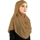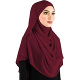 The Chiffon Wrap Hijab is beautiful, modest, and feminine! The Hijab features a sewn-in pleated caplet with 2 sashes that tie back behind the head to secure the hijab. The Shawl measures a generous 70" in length and 26" in width. No details were spared... the fabric is top-quality Korean Chiffon which is lightweight and non-slippery in a gorgeous array of colors.