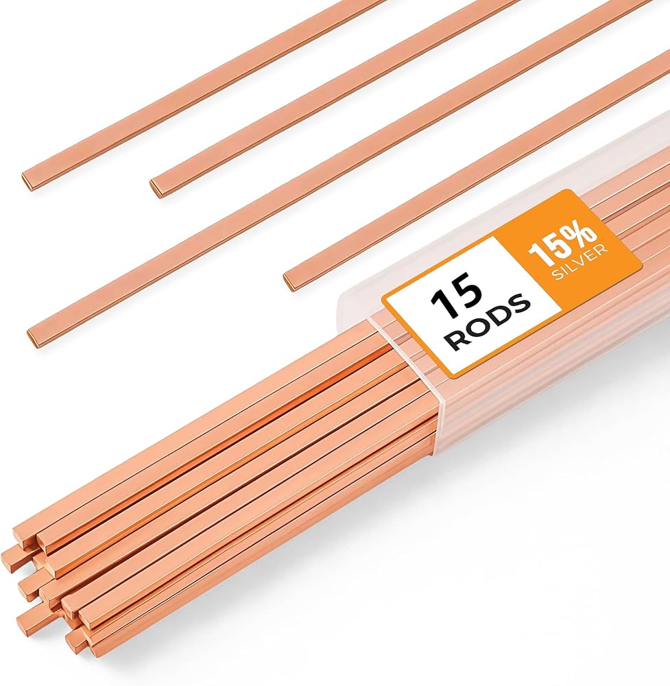 15pcs Brazing Rods AWS BCuP-5 15% Silver Solder Phos Copper Brazing Alloy Flat Welding Rods 0.050"x1/8"x10" for HVAC, Refrigeration, and Industrial Applications
