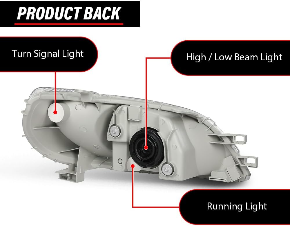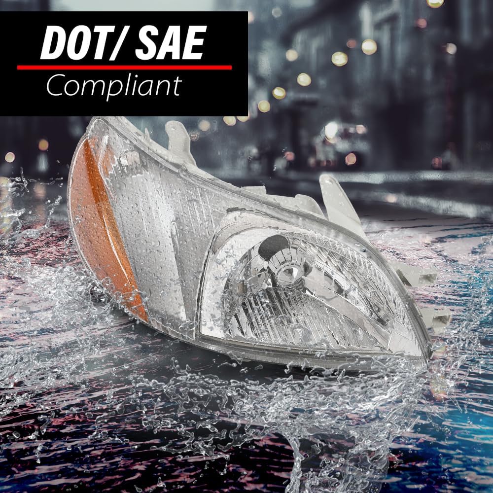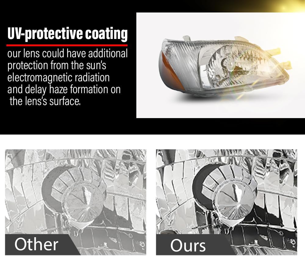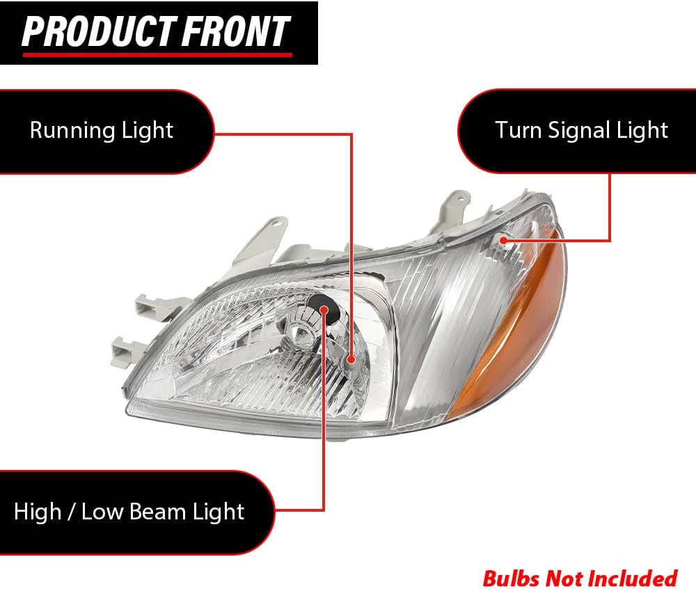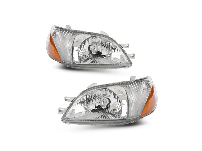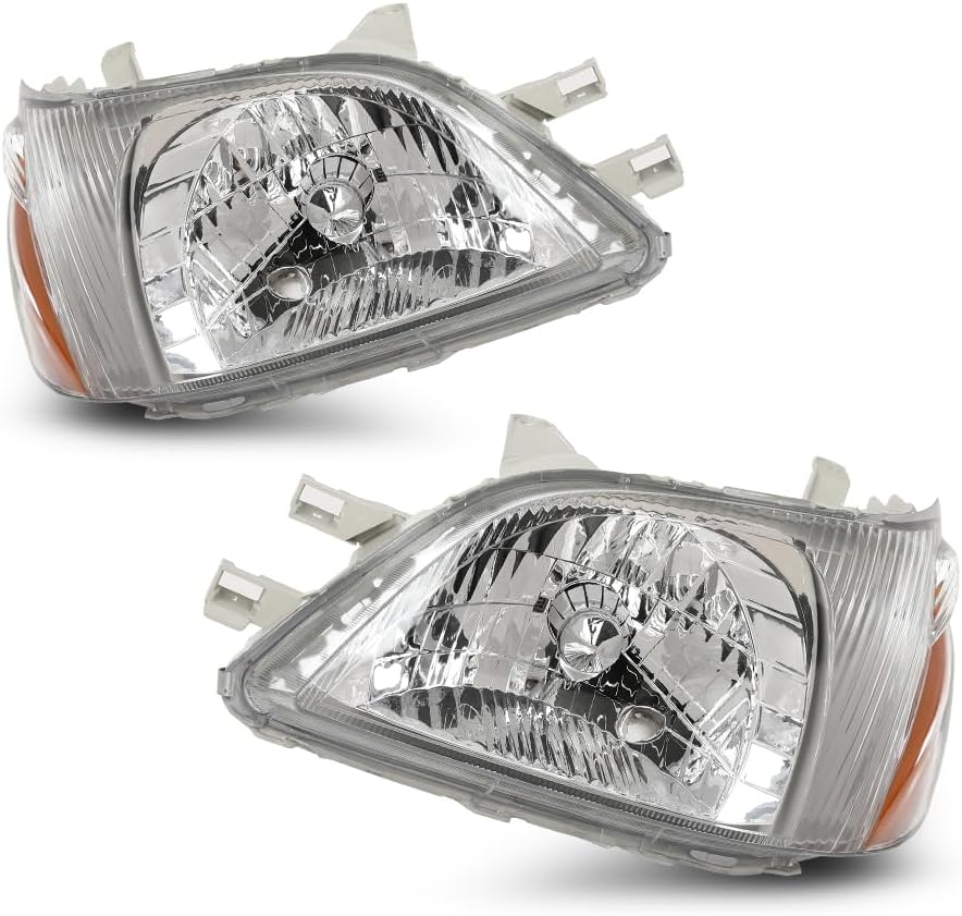 Headlights Assembly Fit For Toyota Echo 2000 2001 2002 Halogen Headlamps, Left Driver & Right Driver Side, Clear Lens Chrome Housing Amber Reflector, 8115052190 8111052190