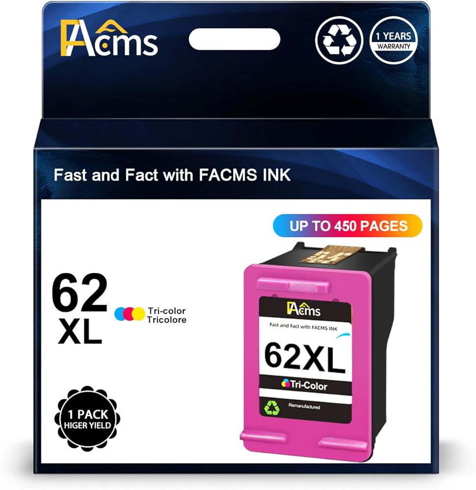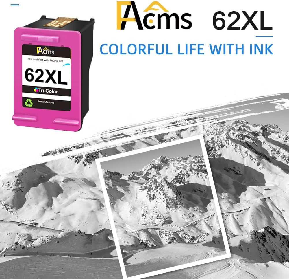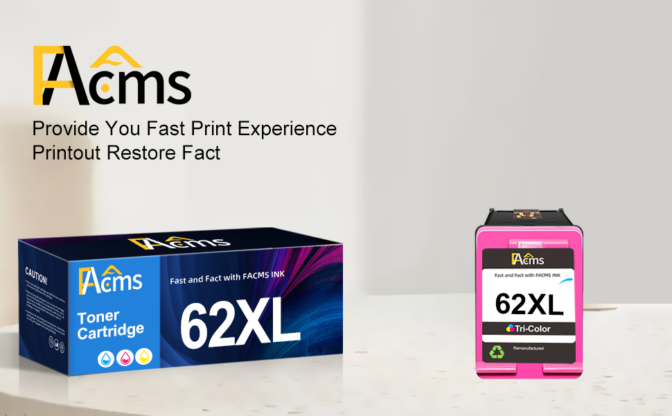 Printout Performance: FACMS remanufactured replacement for hp ink 62xl provides your printouts with clear and sharp text, vibrant colors.Help with recording the bright moment of your working, study and life.