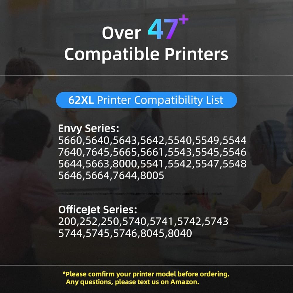 Feature: Smart chips to ensure identify your printer intelligently. Strictly test to comfirm the compatibility of remanufactured for hp 62xl ink cartridge. Well-package keeps 62 xl ink cartridges in good condictions.