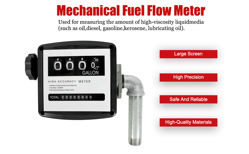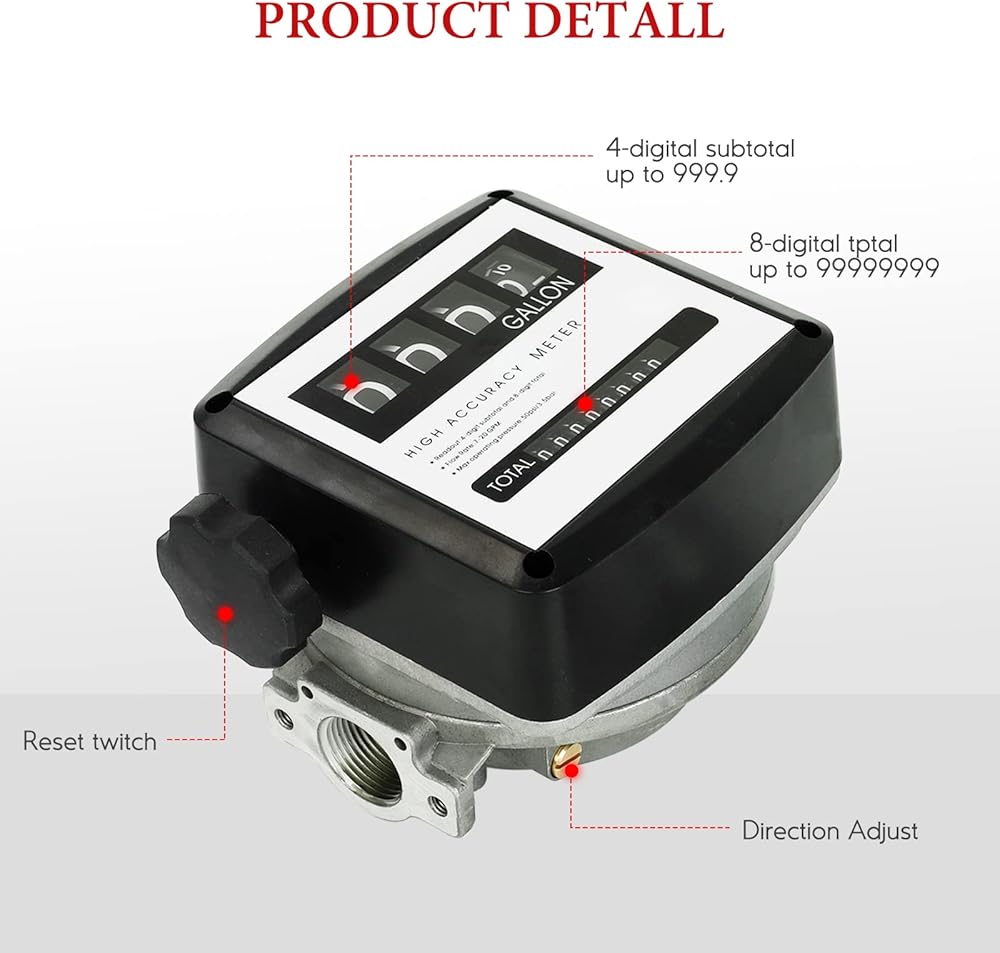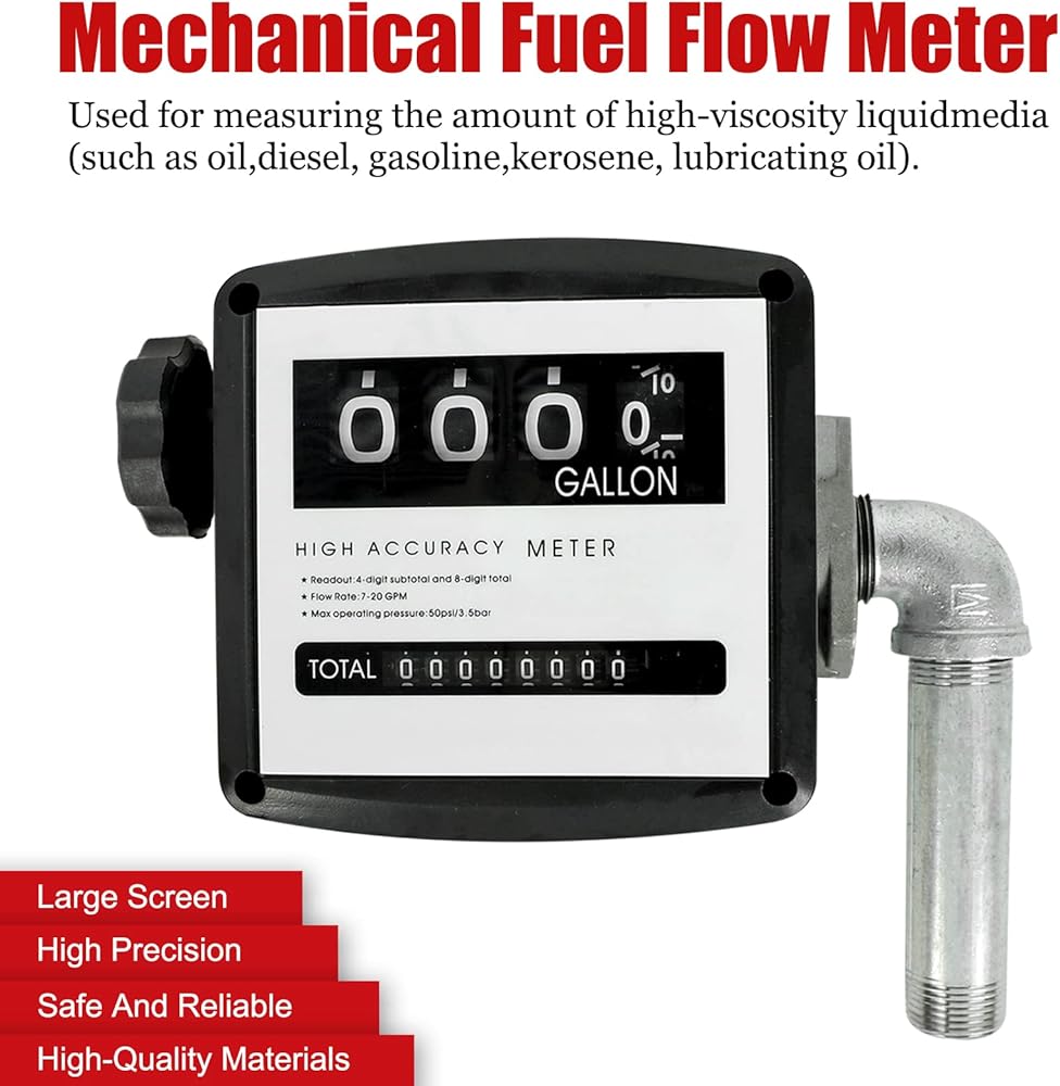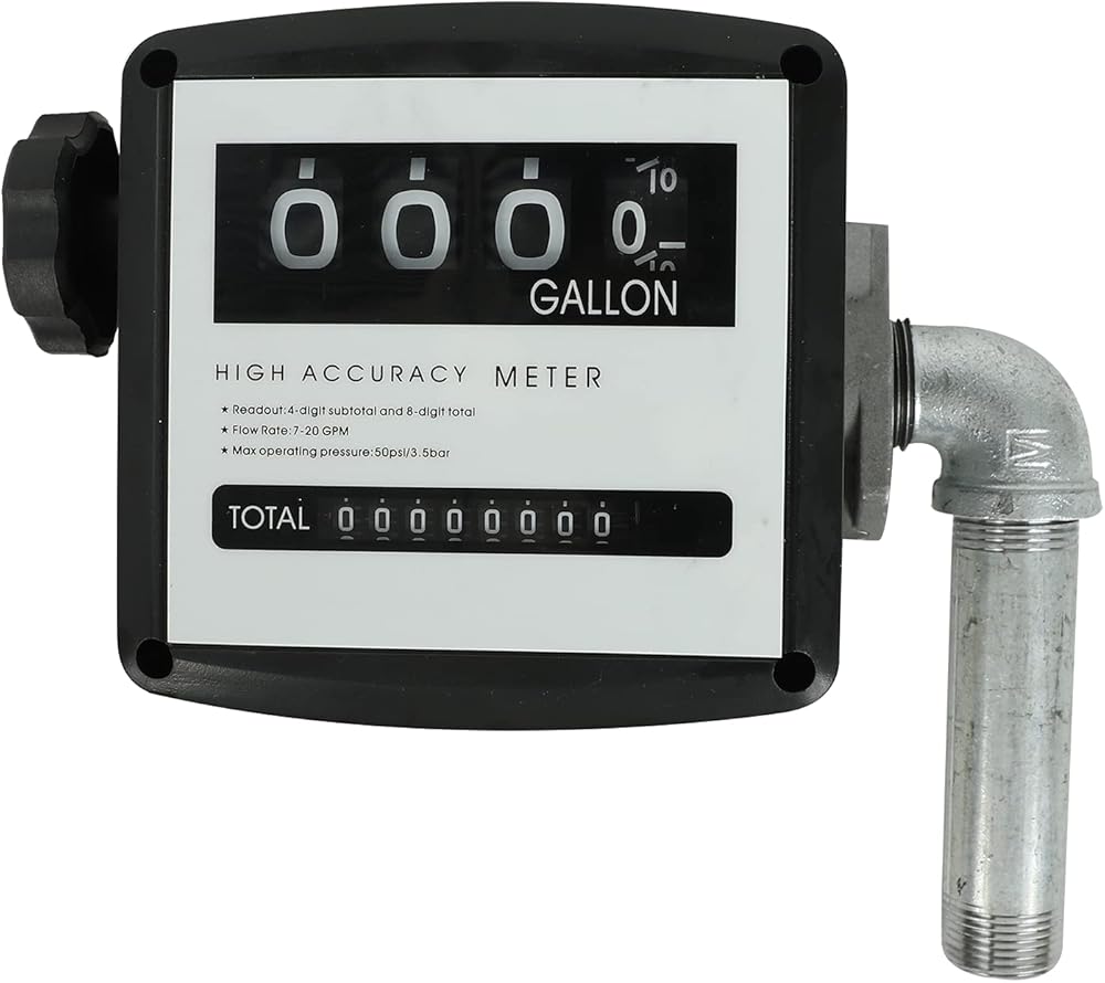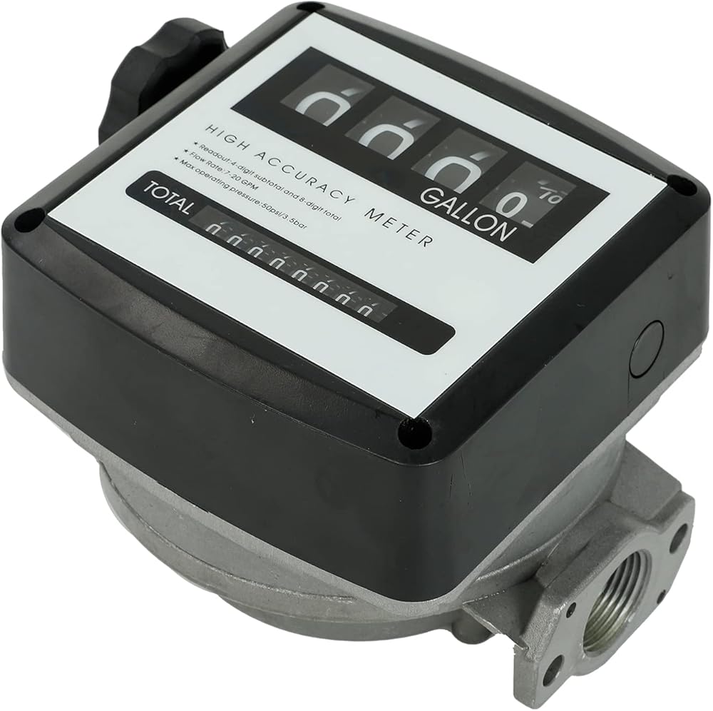 مقياس تدفق الوقود الميكانيكي فائق السرعة 1 بوصة 7-20 GPM 4-شاشة عرض رقمية لجميع مضخات نقل الوقود، 50 رطل لكل بوصة مربعة