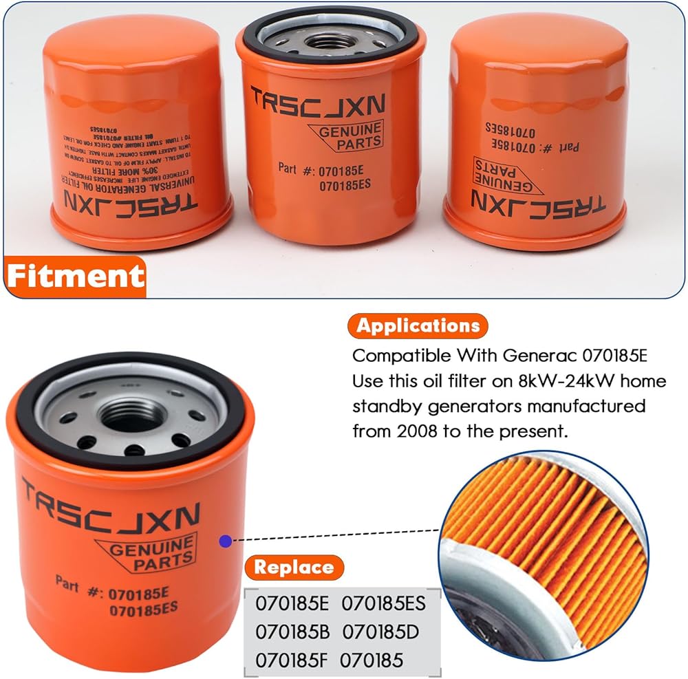 070185ES Oil Filter Compatible with Generac Guardian 8-24kw Series Air-Cooled Home Standby Generators & Portable Outdoor Generators Replace 070185E 70185 070185B(3 Pack)
