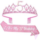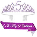 5th birthday decorations for girls: The rhinestones crown refracted brilliant light under the light, and the glitter on the sash were eye-catching. Whether it's a party photo, a close-up of cutting a cake or an outdoor commemorative photo, every photo of the birthday girl can highlight the significance of their 5th birthday. It is an excellent prop for birthday party photos
