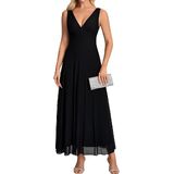 FEATURES: Long dresses for women, flowy dresses for women, a line dress, mesh dress, maxi drersses for women, v neck, v back, sleeveless, solid color, high waist