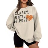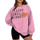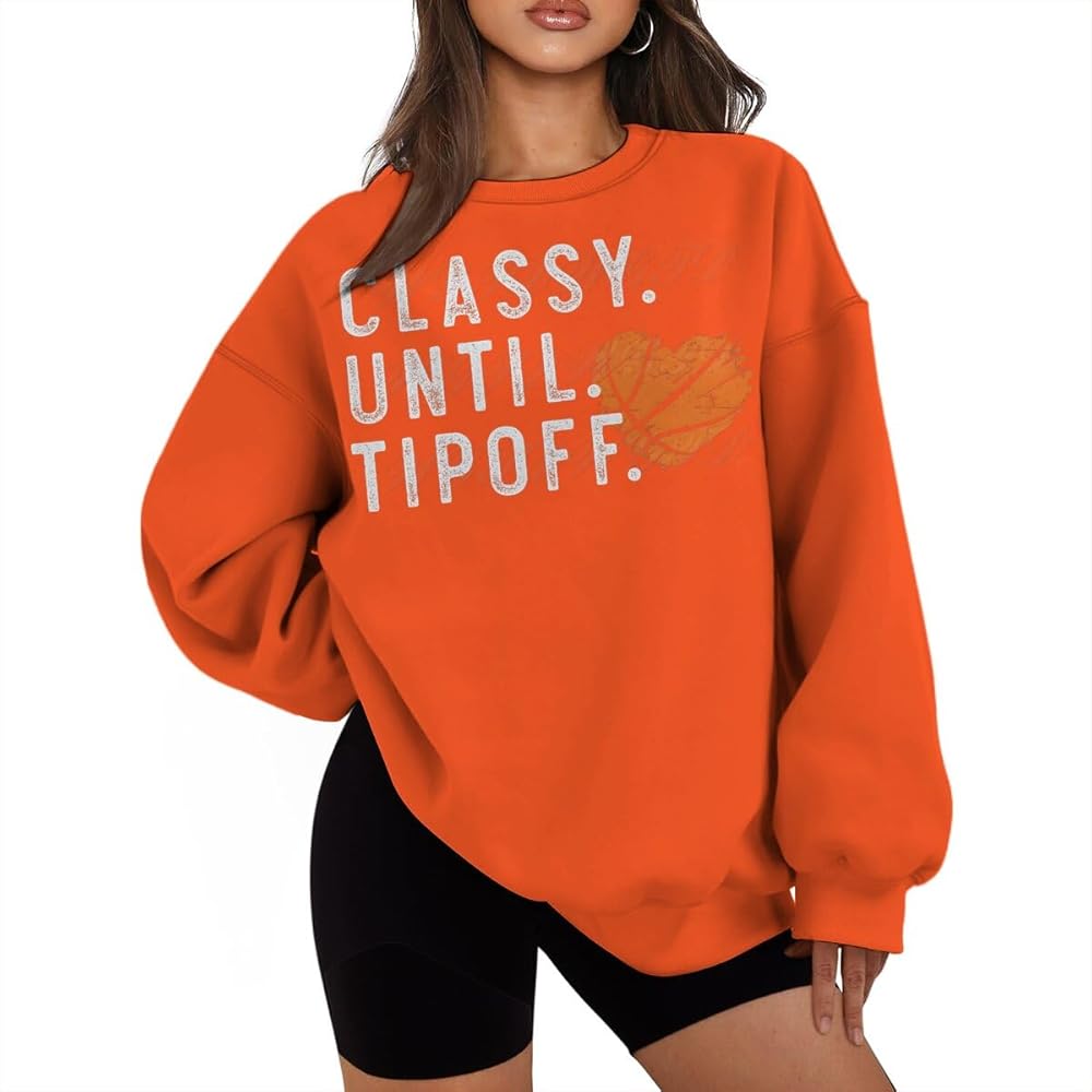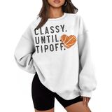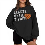 Classy Until Tipoff Unique Basketball-Inspired Design: This women's long-sleeve top features a trendy basketball-themed print, perfect for sports enthusiasts and fashion-forward individuals.
