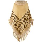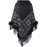 The Women's Tassel Poncho Cape is a fashionable and cozy garment that combines the elegance of a shawl with the warmth of a pullover sweater