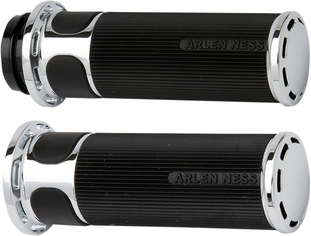 The Arlen Ness Fusion Grips Are Each Designed for Excellent Traction for Your Hands. Billet Aluminum Accents Are Intricately MacHined and Later Finished in Flawless Chrome or Black Anodized.