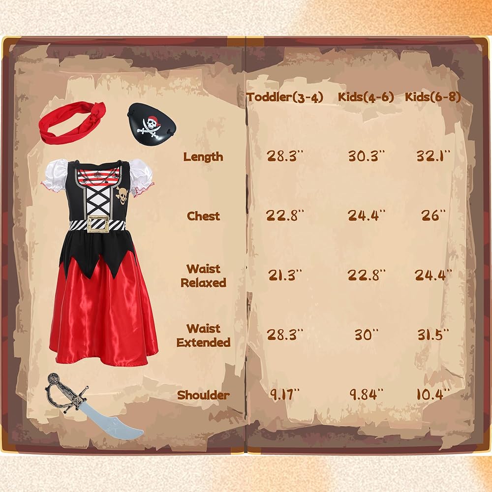 Design: The pirate dress features a charming design that captures the essence of a pirate's attire, ensuring your child looks the part while they embark on imaginative journeys.