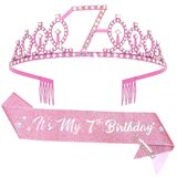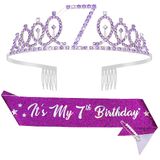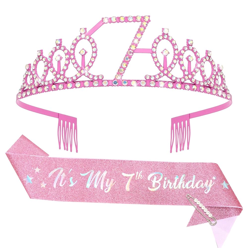 7th birthday decorations for girls: The rhinestones crown refracted brilliant light under the light, and the glitter on the sash were eye-catching. Whether it's a party photo, a close-up of cutting a cake or an outdoor commemorative photo, every photo of the birthday girl can highlight the significance of their 7th birthday. It is an excellent prop for birthday party photos
