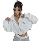 - Design: embroidery pattern, long sleeve hoodie, drawstring hood crop sweatshirt, cropped white/black sweatshirt.
