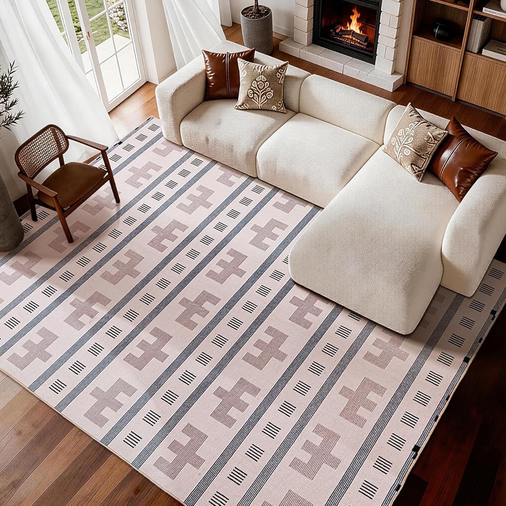 Premium Flatweave Woven Texture: Crafted with a durable flatweave construction, this area rug offers a smooth, low-pile surface that's ideal for high-traffic areas like living rooms, hallways, and entryways. The tight weave ensures long-lasting shape retention, while its flat profile prevents tripping hazards and works seamlessly under doors or furniture legs—perfect for busy households with kids and pets.