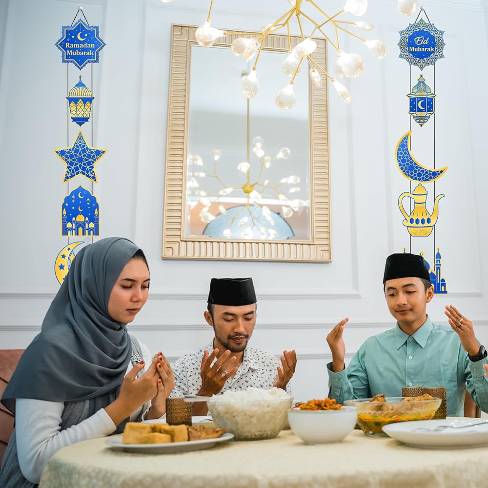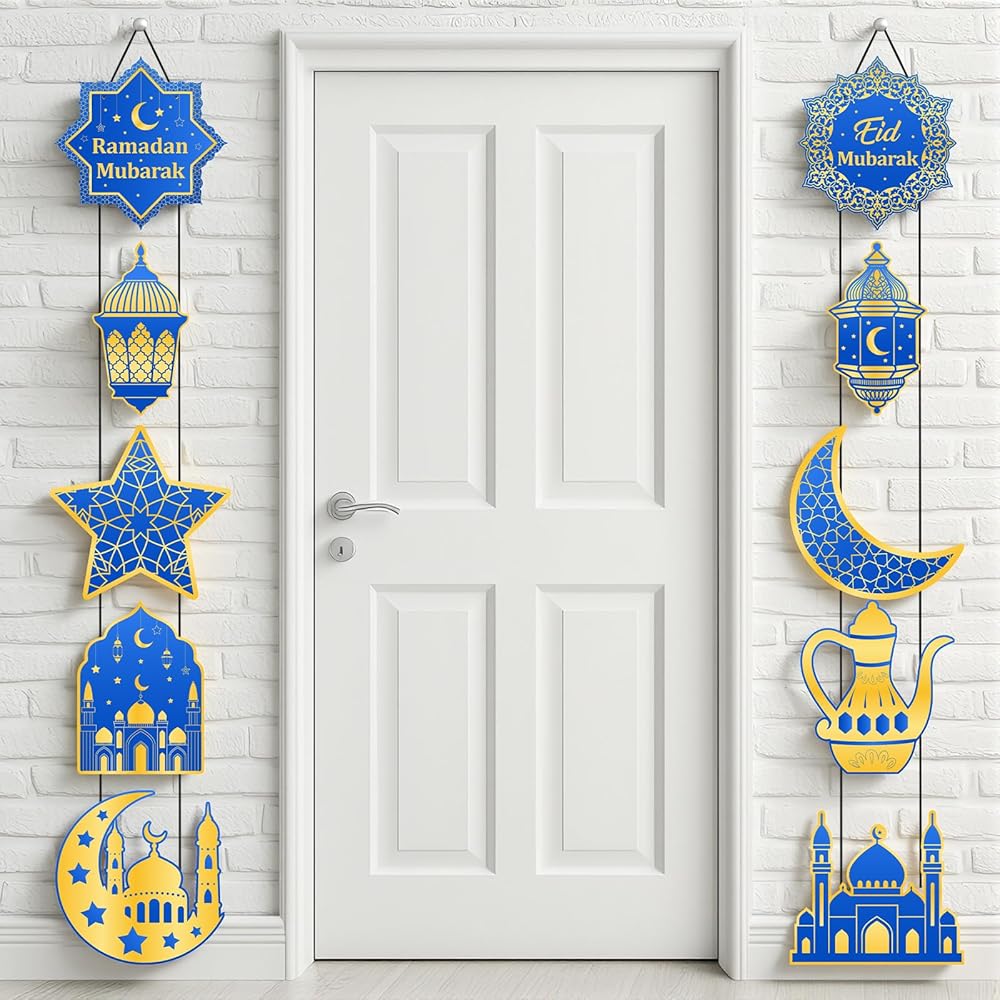 Multi-scene Versatile Ramadan Decor: These blue-gold Eid Mubarak hanging decorations are perfect for porch walls, living room walls, entryways, door frames, fireplaces and balconies. They also fit Eid Mubarak parties, family ramadan gatherings, mosque event decorations and indoor outdoor festive arrangements, ideal for creating a strong Ramadan kareen festive atmosphere anywhere