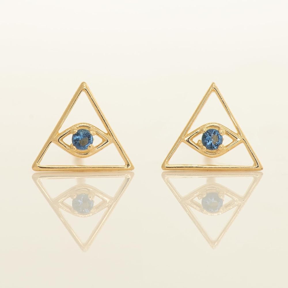ANYGOLDS 14K Real Solid Gold Evil Eye Sapphire Stud Earrings – Tiny Marquise Cartilage Helix Tragus Upper Ear Studs – Adorned With Sapphire Gemstone - Dainty Ear Post for Women - Sold as a Pair