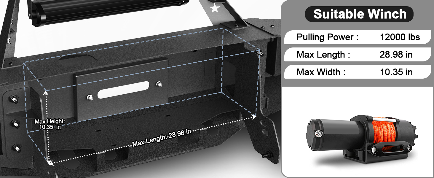 Innovative Design: This bumper for Silverado is newly designed, bending and stiffeners are added to strengthen the structure. Built-in winch plate accommodates any brand of winch up to 12,000 lbs capacity.