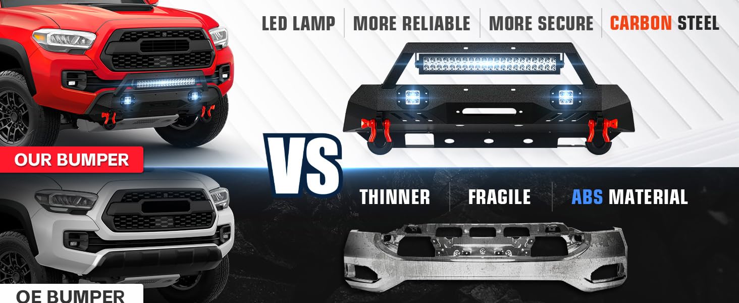 【Exceptional Craftsmanship】Our front bumper is made from high-strength steel and boasts a rugged, textured black powder coating. This combination not only ensures durability and a stylish look but also offers superior protection. Additionally, it's engineered to resist rust, guaranteeing long-lasting performance and a pristine appearance, even if the powder coating gets scratched.