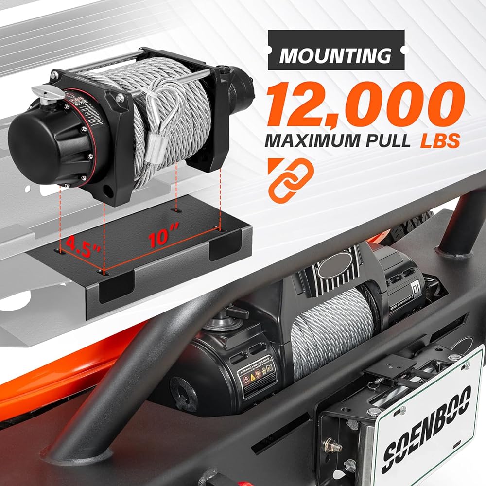 【Complete Accessories】Our front bumper is equipped with numerous features: a durable skid plate to protect the undercarriage, a winch plate that supports up to 12,000 pounds, two 4.75-ton D-rings, pre-drilled holes for the license plate, a powerful 120W LED light bar, and two high-performance 18W LED spotlights. Additionally, it includes installation instructions and all necessary screws for easy assembly.