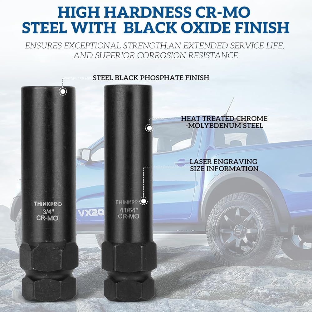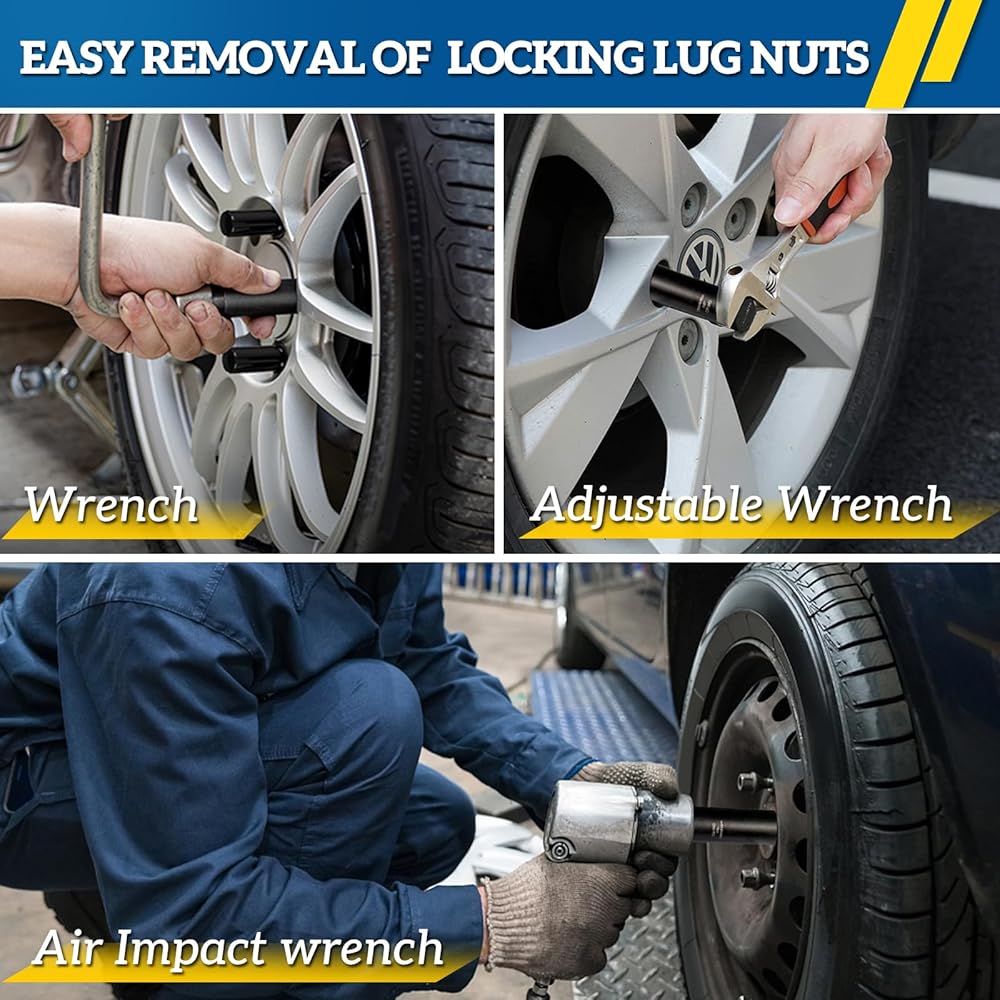 【Reliable Quality】Made of cold forged hardened CR-MO steel with a heat treated and black oxidized finish for high corrosion resistance, the wheel lock removal kit is guaranteed for strength and durability.