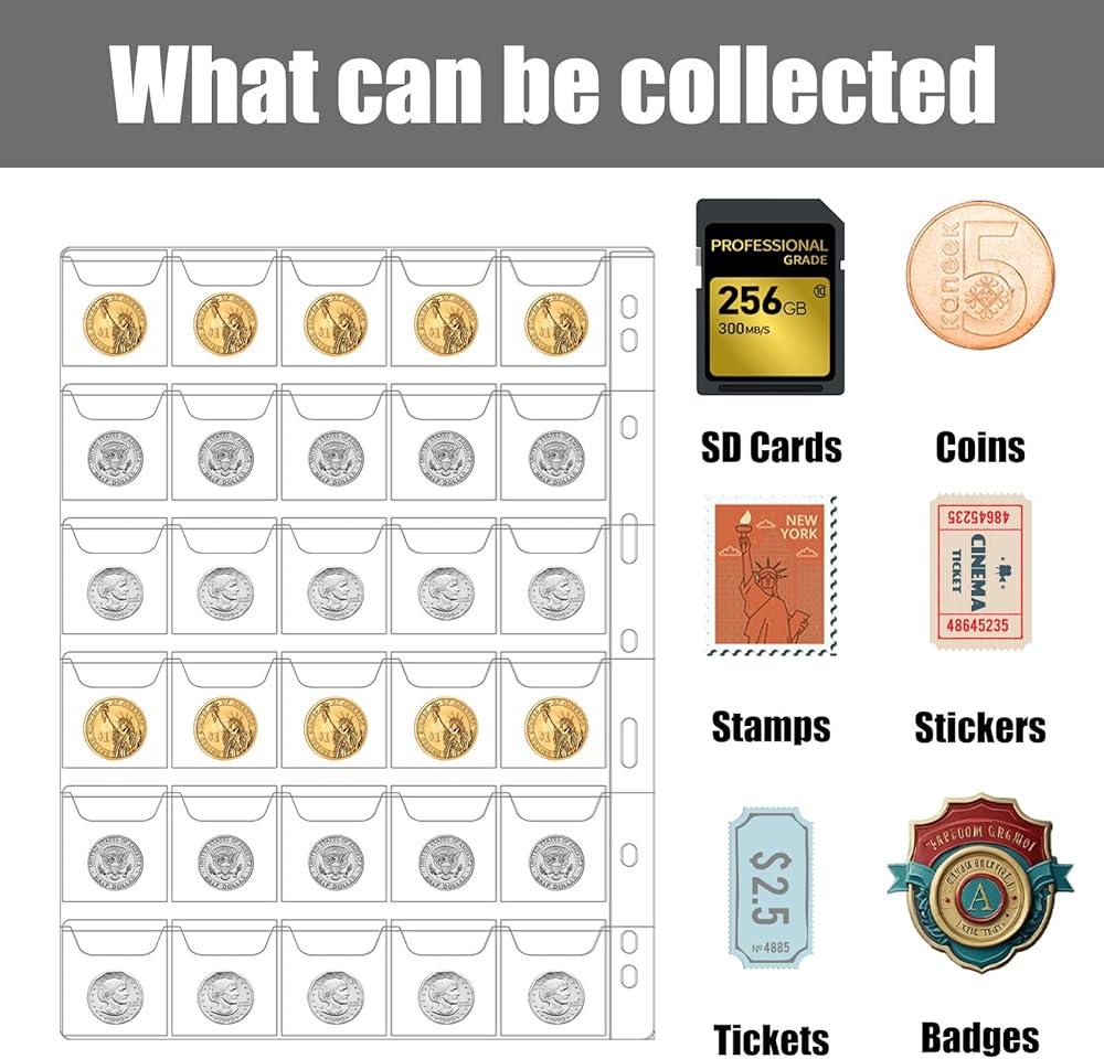 Versatile Choice for Collectors and Hobbyists: Whether you're cataloging personal collections or preparing coins for display, the coin collection holder is essential coin supplies. Suitable for pennies, nickels, dimes, quarters, medals, badges, and even stamp storage and display.