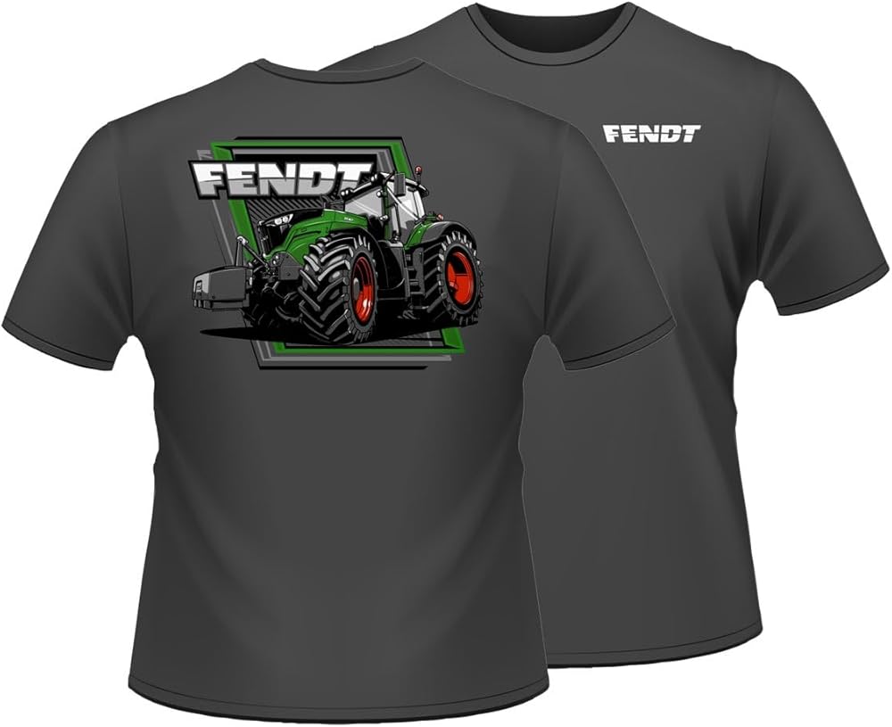 Show your love for Fendt with our Fendt 1050 Tractor Charcoal Grey Short Sleeve T-Shirt, crafted for adult sizes. The charcoal gray shirt features a back graphic showcasing the powerful Fendt 1050 Tractor and a front chest "FENDT" logo for a sleek look. Made from 100% cotton, it ensures both comfort and breathability, making it a perfect choice for tractor enthusiasts who appreciate style and quality in their casual wear.