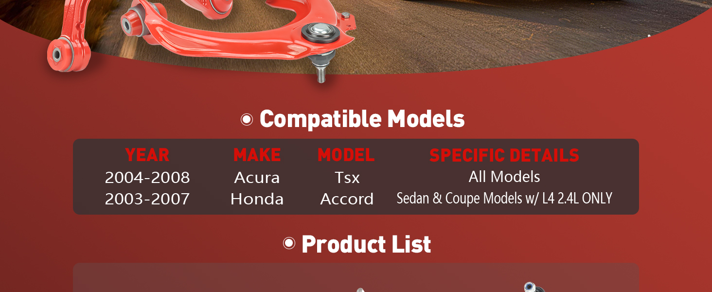 【Professional-Grade Ultimate Chassis Reinforcement Kit】 A comprehensive 16-piece ultimate performance kit designed for the 2003-2007 Honda Accord and 2004-2008 Honda TSX. Transcending standard maintenance, it achieves comprehensive enhancements in chassis rigidity, response speed, and handling precision through material reinforcement of core components.