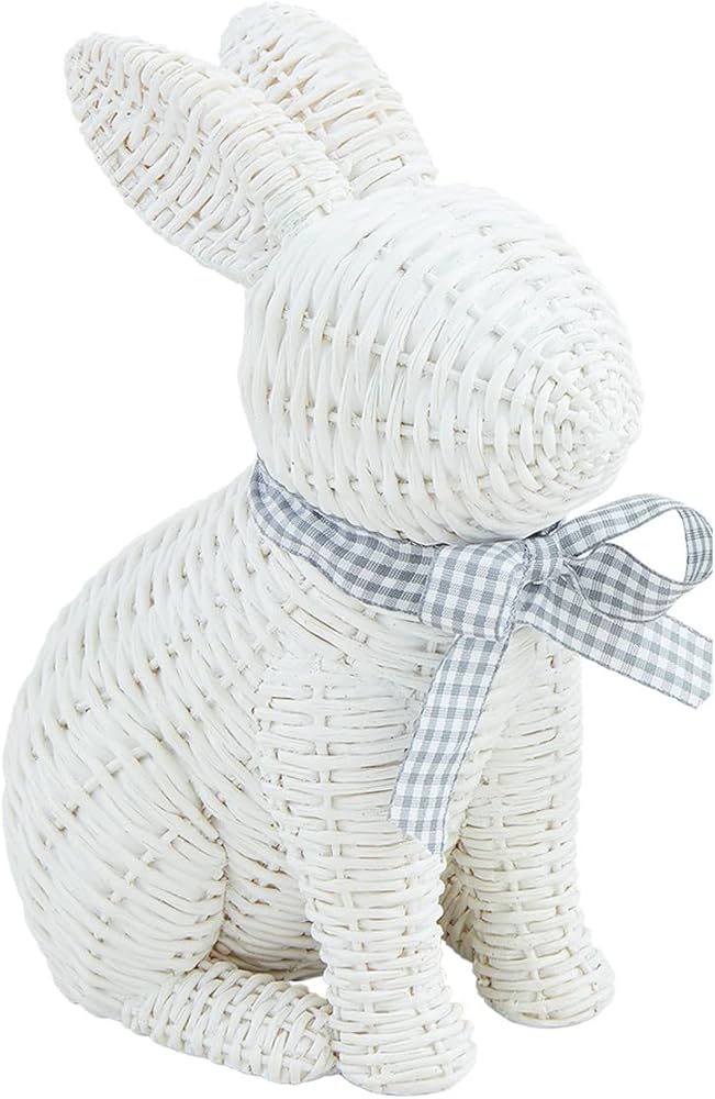 The Mud Pie LARGE WICKER RESIN BUNNY is a charming addition to any home decor, perfect for adding a touch of whimsy and elegance. This delightful bunny figurine is crafted from high-quality resin and meticulously hand-painted to achieve a realistic wicker-like finish. The attention to detail in the design ensures that each piece is unique and full of character. Available in two sizes, the small bunny measures 6 1/4" x 4 1/2" while the large bunny stands at 8 1/4" x 6 1/2", making it easy to find the perfect fit for your space. Whether displayed on a mantel, shelf, or as part of a centerpiece, this adorable bunny is sure to capture the hearts of all who see it. Its timeless design makes it a versatile piece that can be enjoyed year-round or as a special seasonal decoration. Enhance your home with the Mud Pie LARGE WICKER RESIN BUNNY and experience the joy it brings to your living space.