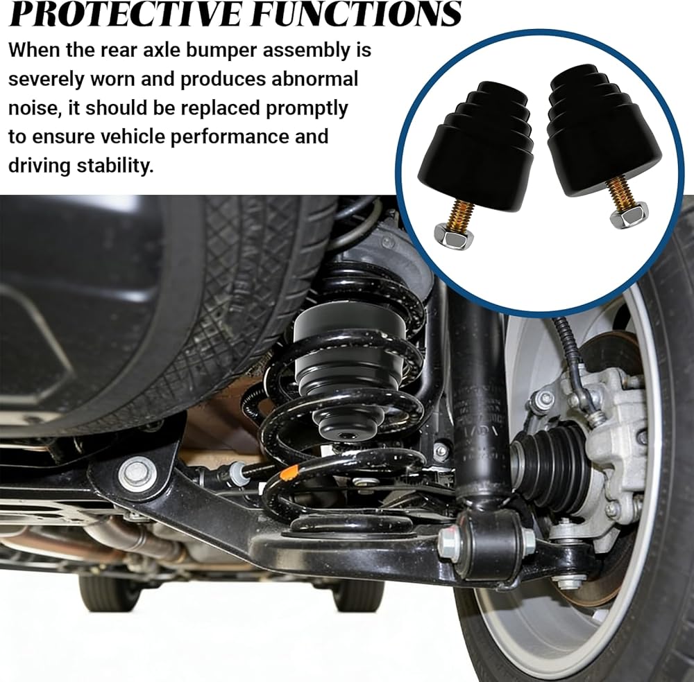 Package Details: You will receive two sets of rubber rear suspension bump stops, including two bump stops and two matching nuts. They can be used as cushioning pads for control arms, tie rods, leaf springs, and other components, providing a smoother and safer driving environment. This is a practical car accessory.