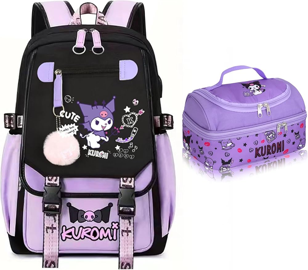 You can search 'Anime' in our store(Roffatide) for more other anime element design products. Material: High quality lightweight durable polyester. High-density twill laminate, durable and tear-resistant.Size: H*W*L: 15.7'' x 5.5'' x 11.8'' (40 x 14 x 30 CM ). Can holds A4 book and 13.3 inch laptop.Pockets: 1 flap zippered pocket, 2 side water bottles pockets; 2 zipper pocket, 1 main compartment contains 1 laptop pocket, 2 open pocket.Features: Main compartment with double zippers closure, adjustable and padded shoulder straps, thick and durable fabric. 2 side pockets with compression straps on both sides of the backpack can hold water glasses or umbrellas. With slots and extension cords of USB and headphone.If you are a fan of anime Kuromi and are looking for a bag of suitable size for daily use, this backpack is a good choice.